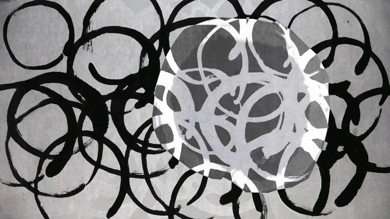 This abstraction video is written by the Gold Mountain Society and manipulated in production and post production by Hoover.  It is ideally displayed on two parallel portrait oriented monitors in order to reference the original poems written by the GMS which took the form of Chinese traditional Duai Lian poems.  This form of poetry consists of two 7 character vertical scrolls displayed next to each other, or often on opposite posts of a doorway.